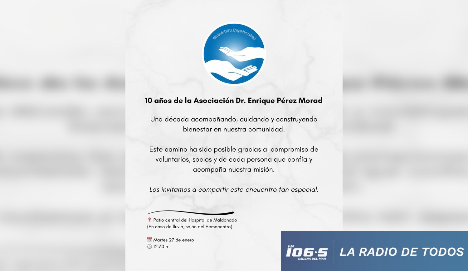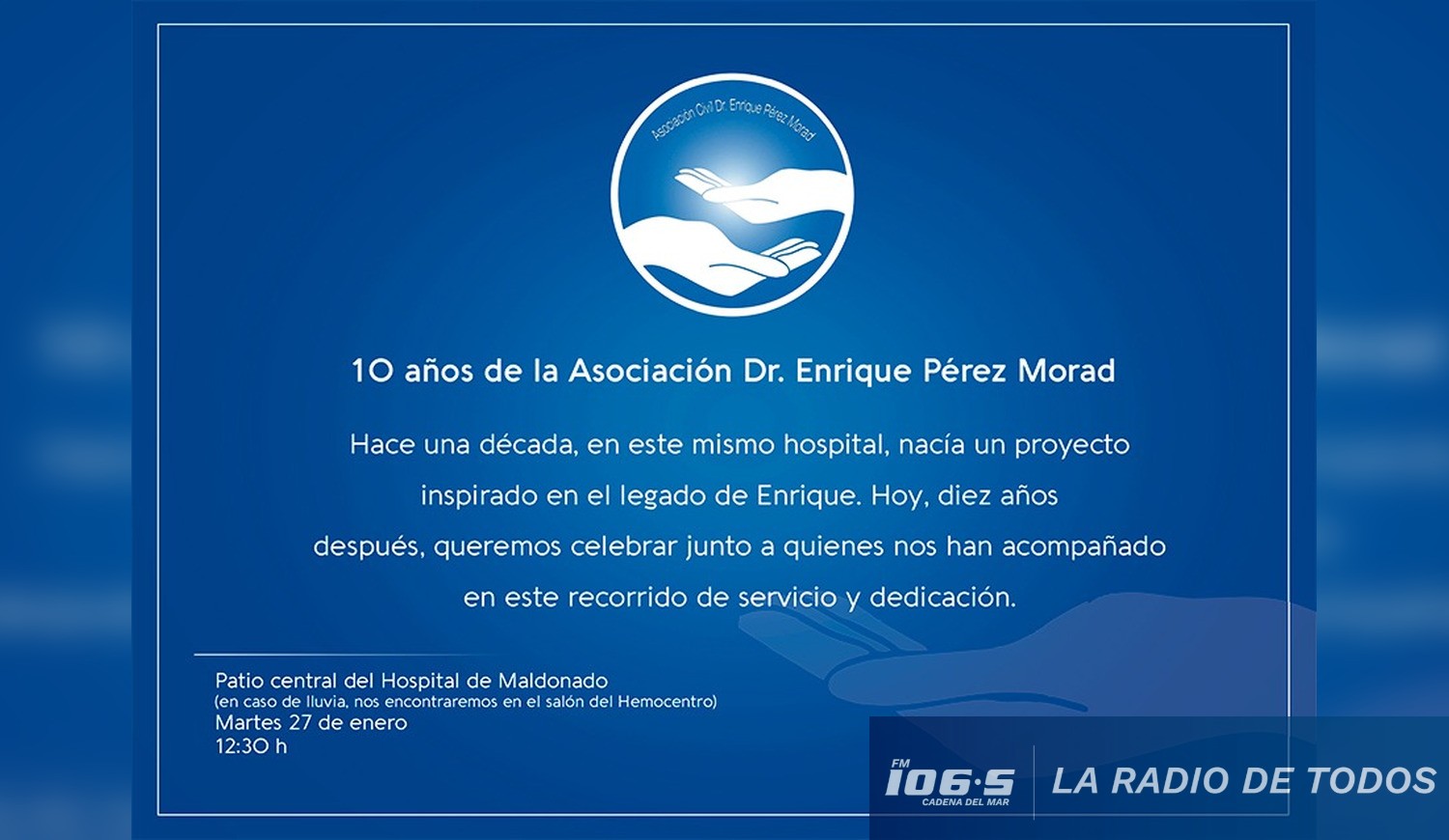 Mañana, martes 27 de enro, la Dirección del Hospital de Maldonado cederá sus instalaciones una vez más para conmemorar esta década de trabajo ininterrumpido de la Asociación Civil Dr. Enrique Pérez Morad, reafirmando el vínculo indisoluble entre la institución de salud y el legado humanista que dejó el médico.